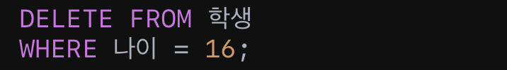 • 예시: 나이가 16인 학생 삭제