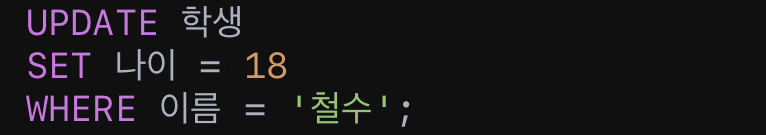 • 예시: 철수의 나이를 18로 수정