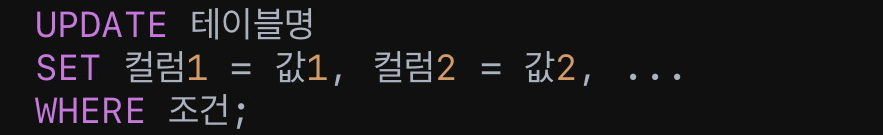 SET 컬럼1 = 값1, 컬럼2 = 값2, ...