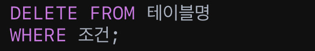 | 데이터 삭제 | DELETE FROM 테이블명 WHERE 조건; |