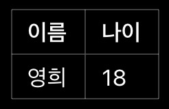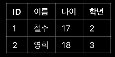• 컬럼(Column): 테이블의 각 열 (e.g., 이름, 나이)