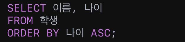 • 예시: 나이 순서대로 학생 조회 (오름차순)