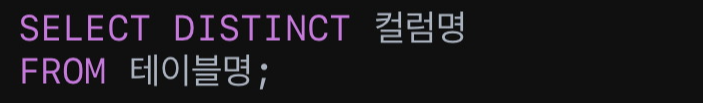 SELECT DISTINCT 컬럼명